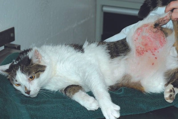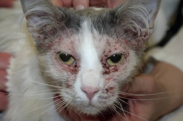 Під час лікування препаратами, що вимагають тривалого прийому, поступово зменшується інтенсивність клінічних ознак хвороби. Кішка стає спокійнішою, рідше і менше свербить, краще спить. Під час лікування антимікробними або протигрибковими препаратами поступово зменшуються, потім зникають запальні елементи.