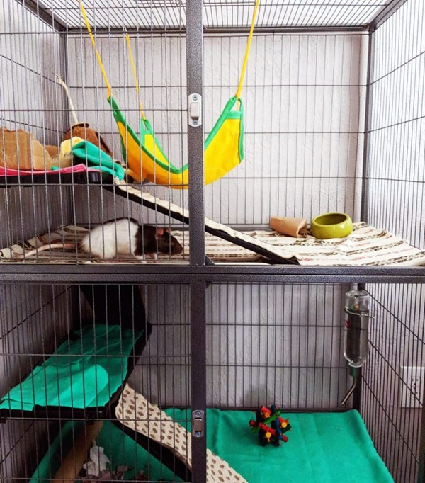 Простір клітки буде поділений на зону відпочинку і їдальню. Також щури будуть влаштовувати галас і грати, особливо якщо вони рідко виходять на прогулянки.