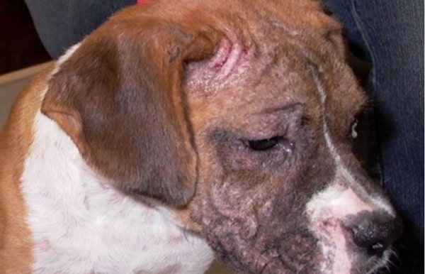 Під час перебігу хвороби у собаки може бути уражена морда, передні кінцівки, а також уся поверхня тіла.