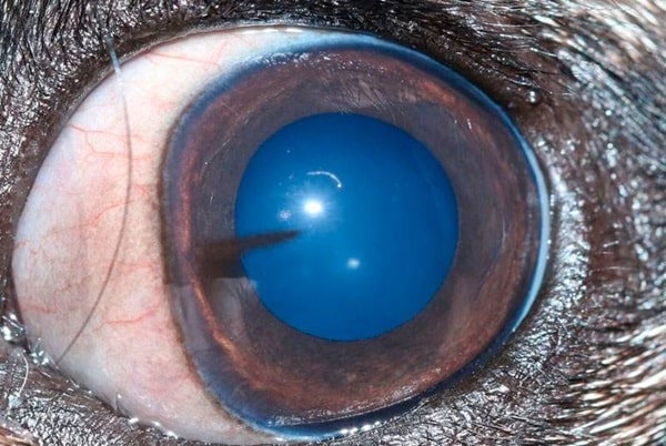 - Симптоми можуть включати почервоніння ока у собаки, сльозотечу, світлобоязнь, помутніння рогівки і видимі пошкодження на її поверхні.