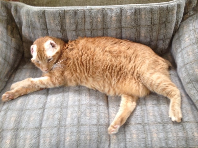 Боб, насправді, один зі щасливчиків, оскільки не здається, що він страждає від постійного хронічного болю. Тепер, коли він освоївся, він став більш ласкавим і розслабленим, навіть поряд з іншими, старішими кішками моєї подруги. Це чудово.