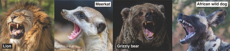 Лев, сурикат, ведмідь грізлі й африканський дикий собака та їхні ікла