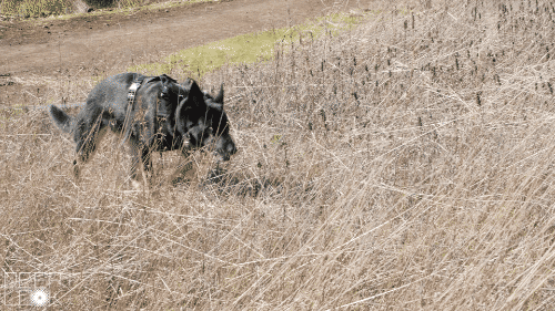 У сонячний день біля Мартінеса, штат Каліфорнія, доброзичлива німецька вівчарка на ім’я Зінка мчить стежками Регіонального парку Бріонес у шлеї з датчиками, батареями і дротами. За нею слідує її тренер Шей Кук із довгим повідцем у руках.