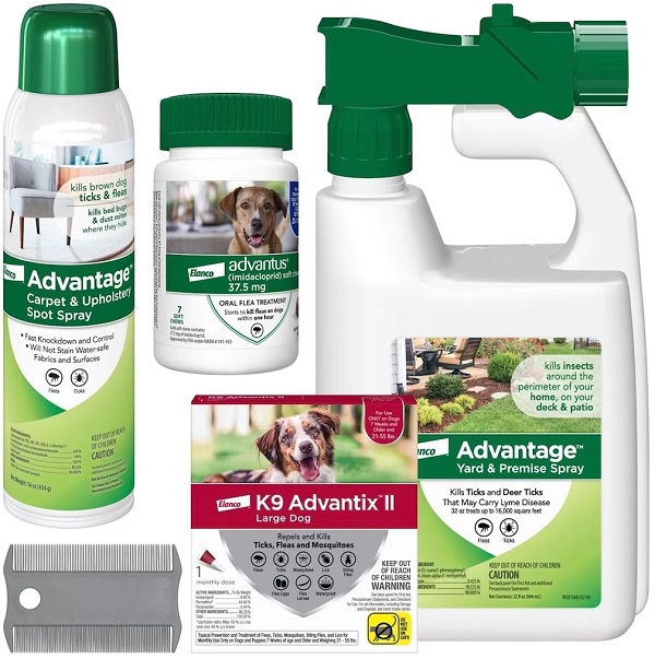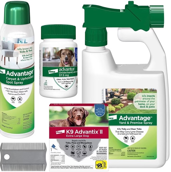 If your pet has fleas, or you’re concerned about fleas, one effective approach is to treat your property and home, as well as your pet, to eliminate eggs and adults fleas. The following product bundles offered by Chewy.com (PetMD is owned by Chewy) offer protection for your pet, inside your home, and outdoors. Always consult with your veterinarian before using flea and tick control products.