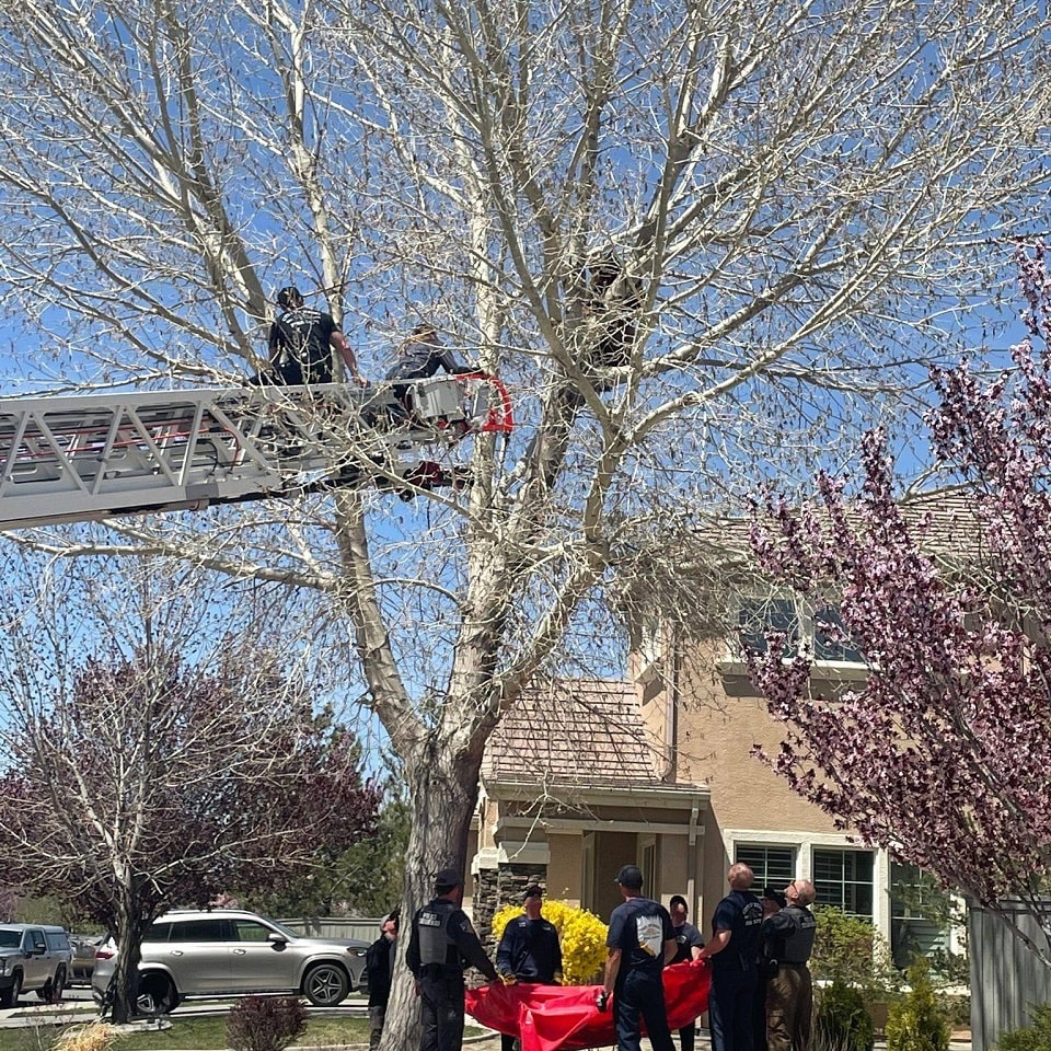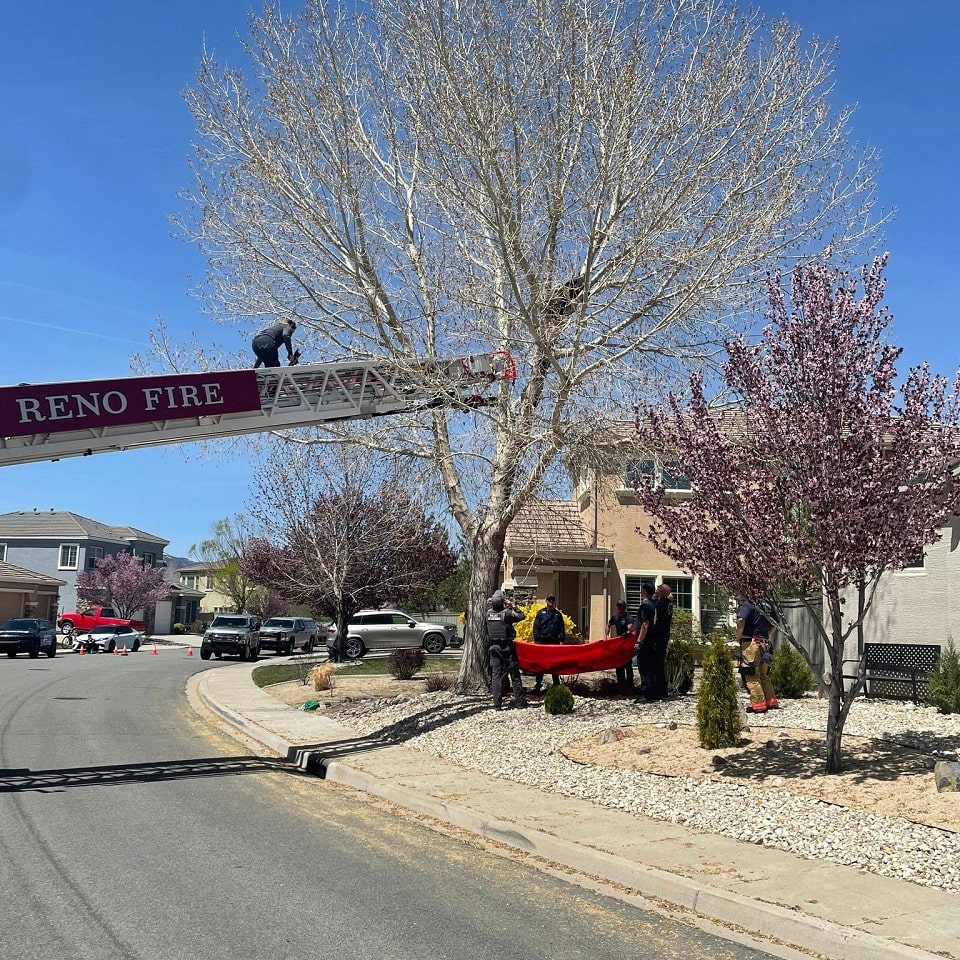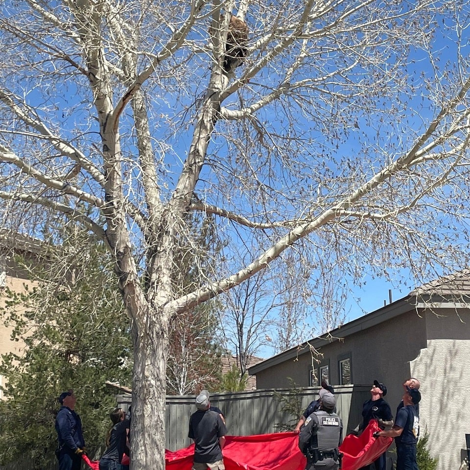 Firefighters from Reno, Nevada, had to rescue a bear in a delicate situation. The bear had climbed up a tree and got stuck there, afraid to come down on its own. However, the firefighters, called by local residents, didn’t allow the bear to stay in the leafy trap for too long.