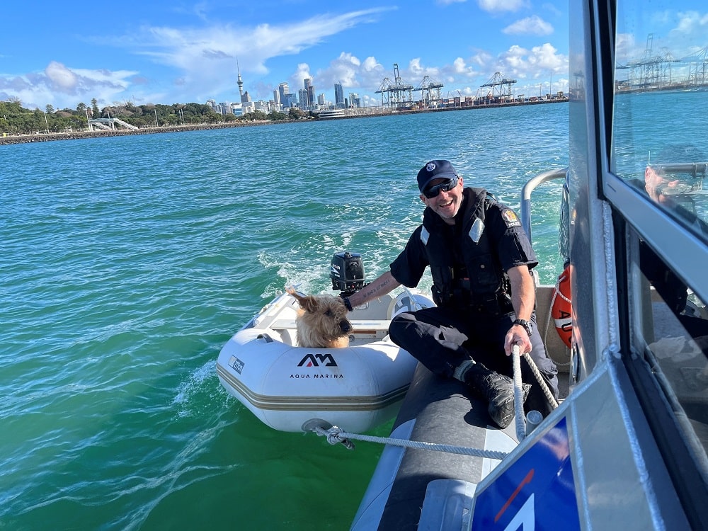 Police in Auckland, New Zealand, had to rescue a dog named Huxley who embarked on an unplanned sea adventure.