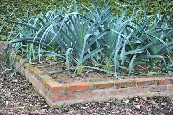 Недорогі та прості в установці цеглини — найкращий вибір для огорожі грядок. Потрібно лише викопати траншею і поставити в неї цеглу вертикально, додавши кілька металевих кілків, щоб утримувати конструкцію на місці. У цьому випадку можна обійтися без цементного розчину.