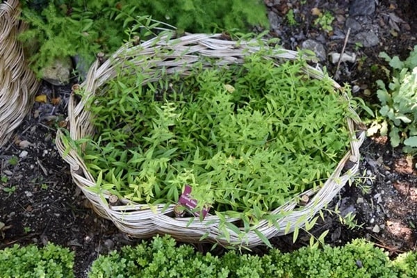 Окантовка з тину не тільки має по-селянськи колоритний вигляд, а й утримає землю на грядці від вимивання дощем. Плетені підпірки особливо гарні для розлогих чагарників.